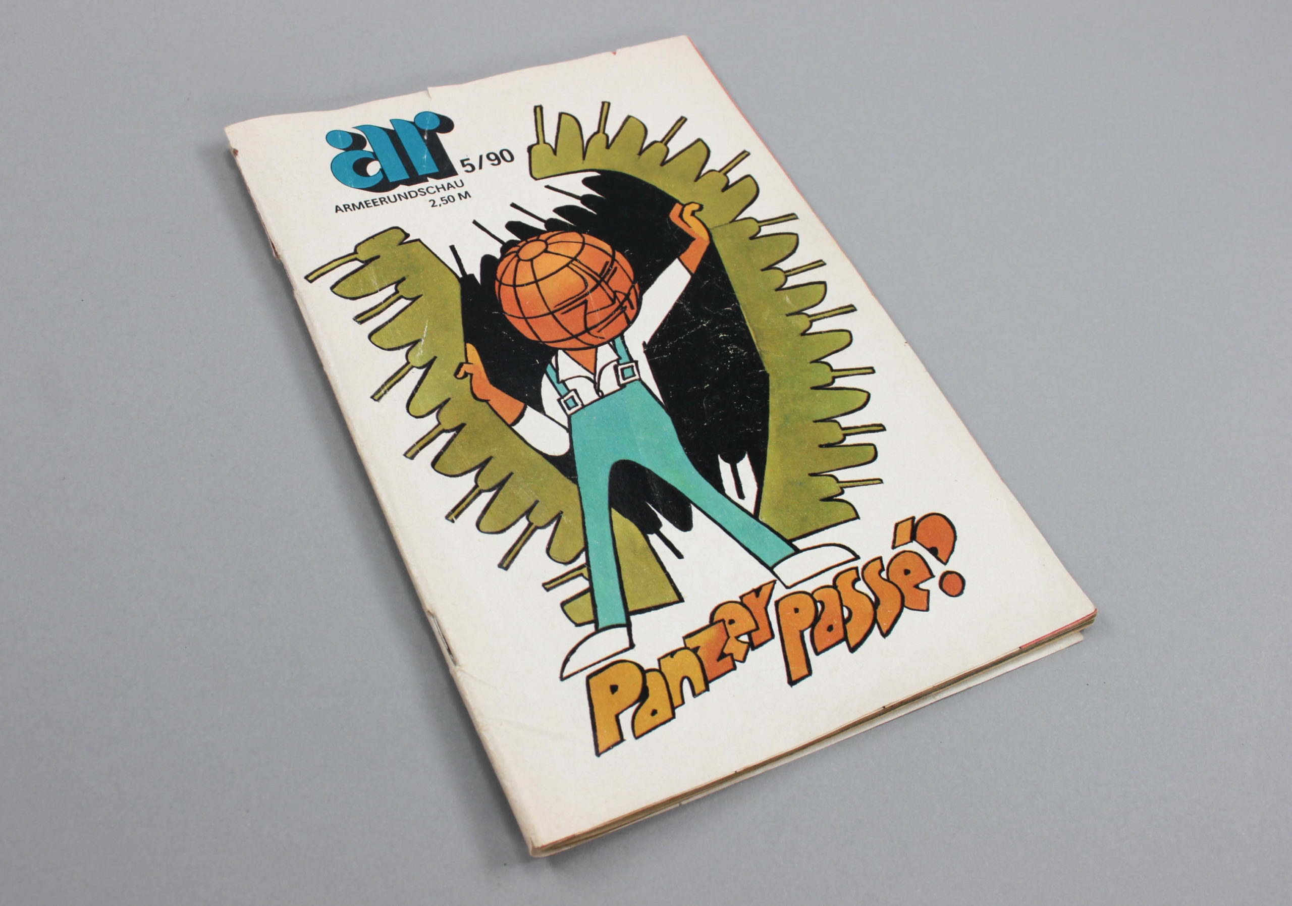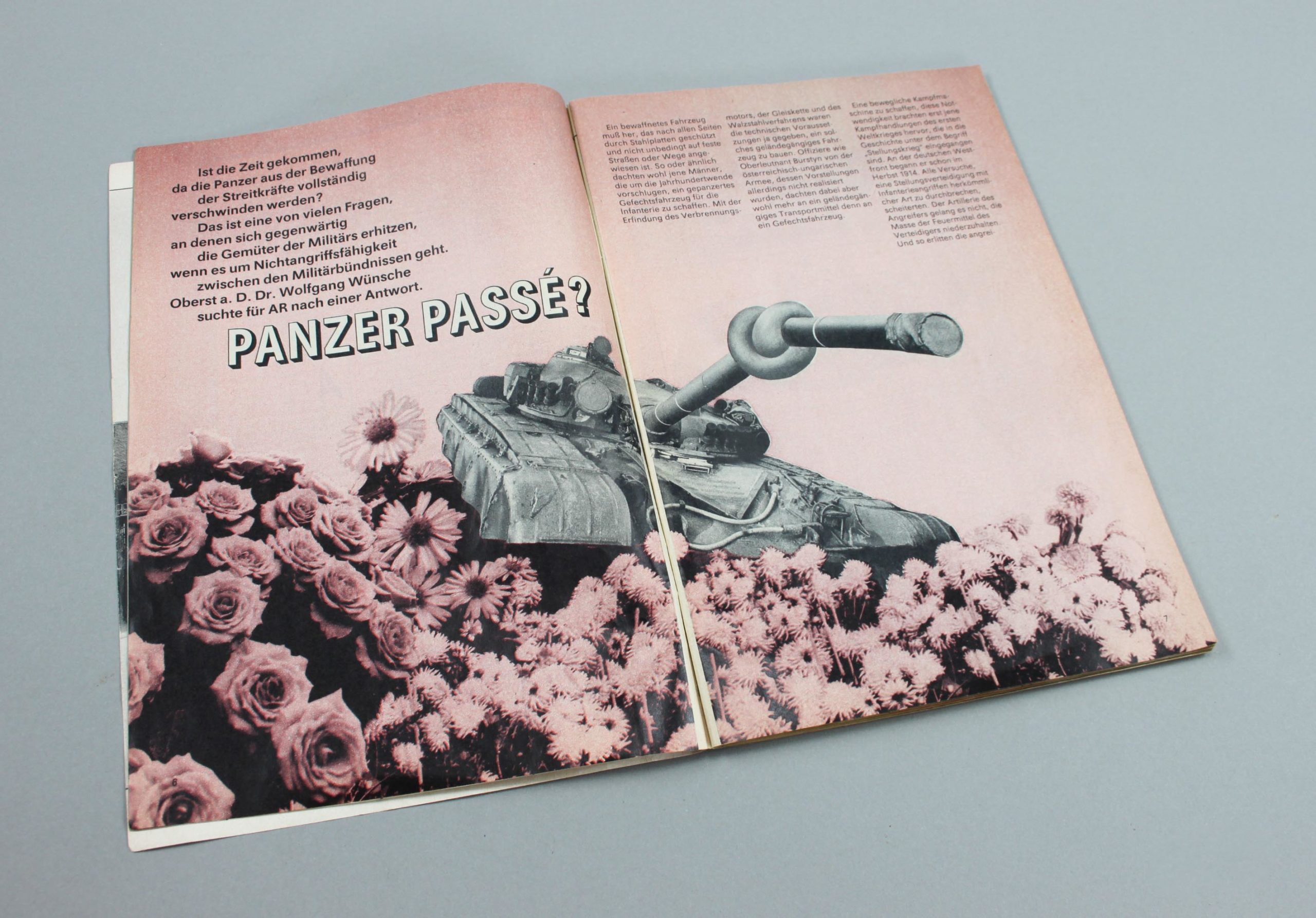 With the political upheaval in 1989, the magazine was given unprecedented freedom in terms of content and gave itself the subtitle “The international military magazine”. During this period of upheaval, many people asked themselves what a German army could look like in the future. In one of the last issues of Armeerundschau in May 1990, the military historian and then editor-in-chief of the GDR magazine “Militärwesen” discussed what place tanks could have in these visions of the future. The article “Panzer passé?” opens with a collage of a T-72 with a knot in its barrel driving through a pink flower meadow. However, according to the author, the tank may have had its day as an offensive weapon of aggressive war for purely national defense. The high costs and poor environmental balance also made tanks appear less sustainable: However, as could already be foreseen during the Vienna negotiations on the reduction of conventional armed forces, which began in March 1989, only a reduction, but not an abolition of armored forces was up for debate. However, according to the author, tanks were “not yet passé, but only for the time being.” The Armeerundschau, on the other hand, was already passé two months later: like most NVA periodicals, it was discontinued in the summer of 1990.