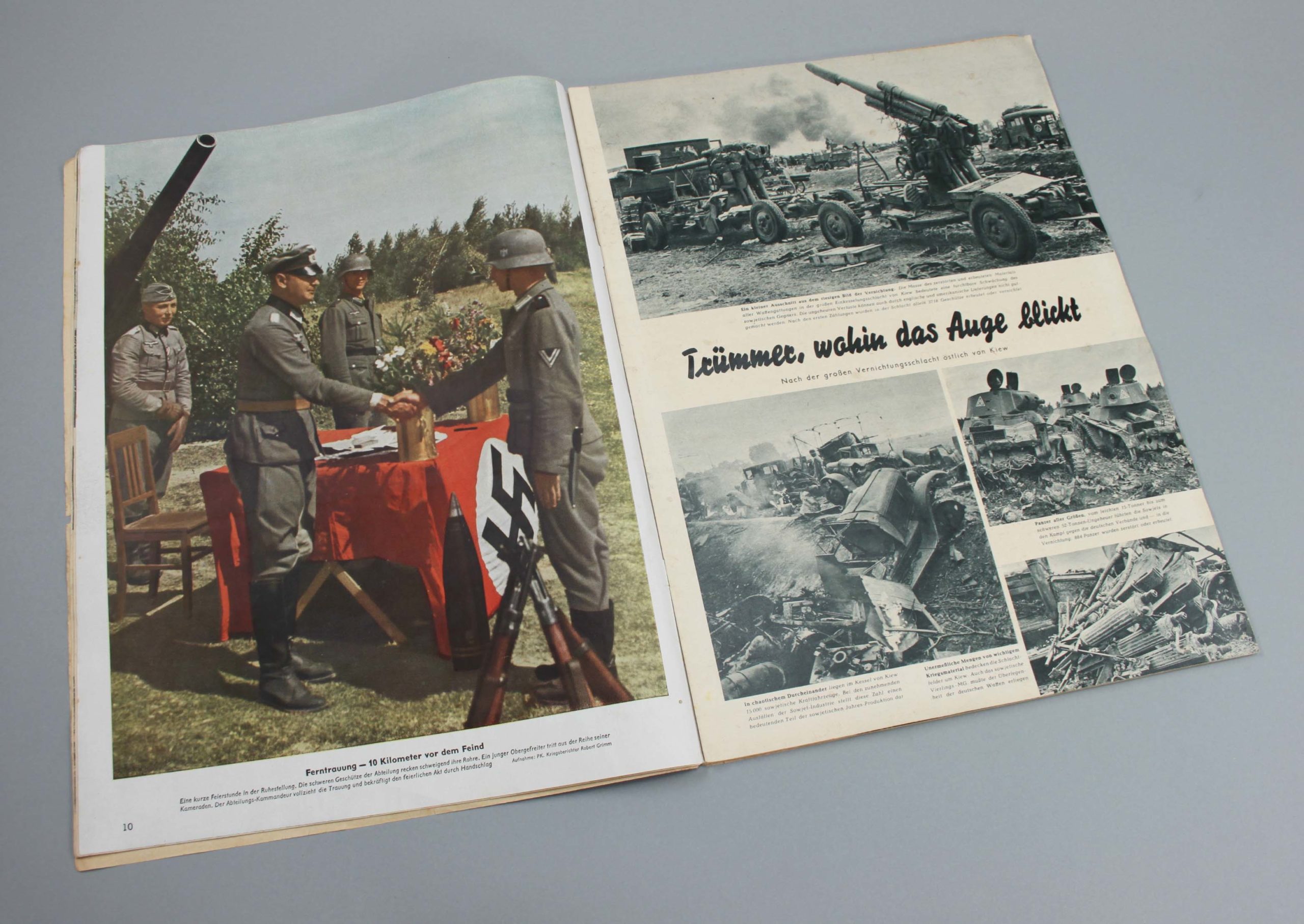 It was usually published twice a month and contained forty pages, with eight color pages. At the peak of its circulation at the end of 1942, the total circulation was 2.4 million copies. This high figure was mainly due to the constant addition of new language editions, which were often hastily published and poorly translated. In the first edition, the magazine was published in German, French, English and Italian, but more and more were added as the war progressed. By 1945, a total of 25 language editions had been published, some of which were only produced for a short time and in small print runs. Added to this was the unrivaled low price that commercially operating magazines could not achieve. Despite high sales figures and advertisements, the magazine was a loss-making business for Deutscher Verlag due to the high production costs, which is why the Wehrmacht subsidized it.