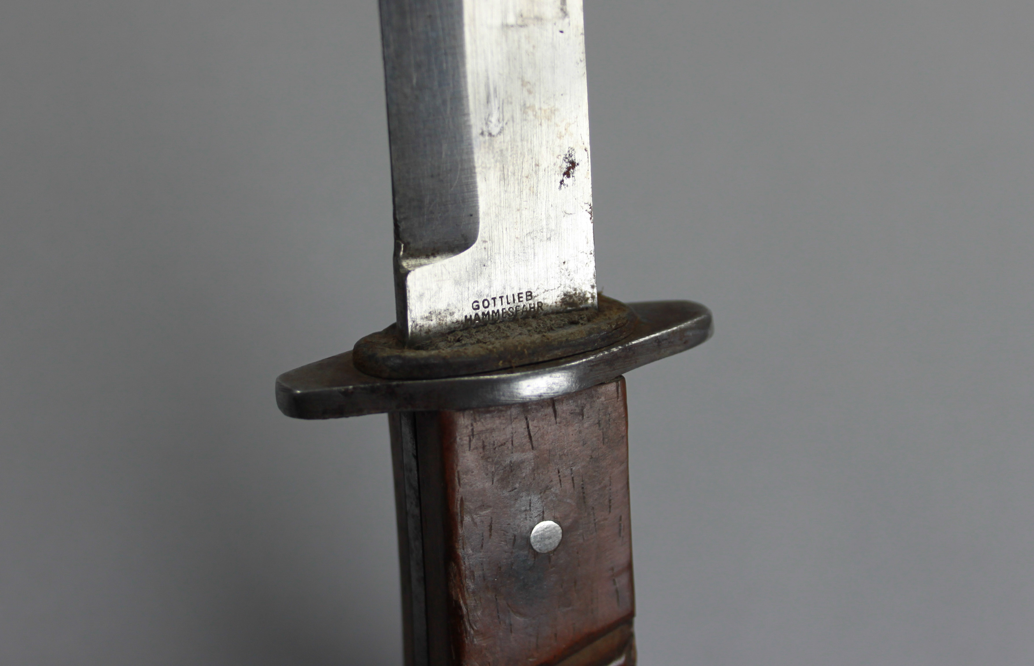 Der hier zu sehende Dolch ist eine abgenommene Dienstwaffe und damit eine Standardausführung mit einer geschwärzten Stahlblechscheide und lederner Koppelschlaufe. Auf der Klinge unterhalb des Parierstücks steht der Name des Herstellers: Der Klingenhersteller Gottlieb Hammesfahr besaß eine innovative Stahlwarenfabrik in Solingen und setzte früh auf die Mechanisierung von Arbeitsschritten. Dies gefährdete zahlreiche Arbeitsplätze in der Fabrik, weshalb die Belegschaft Streiks organisierte, worauf Hammesfahr jedoch nicht reagierte. Sein Unternehmen wurde letztlich von den neuen Rüstungsaufträgen während des Krieges vor dem Ruin gerettet.