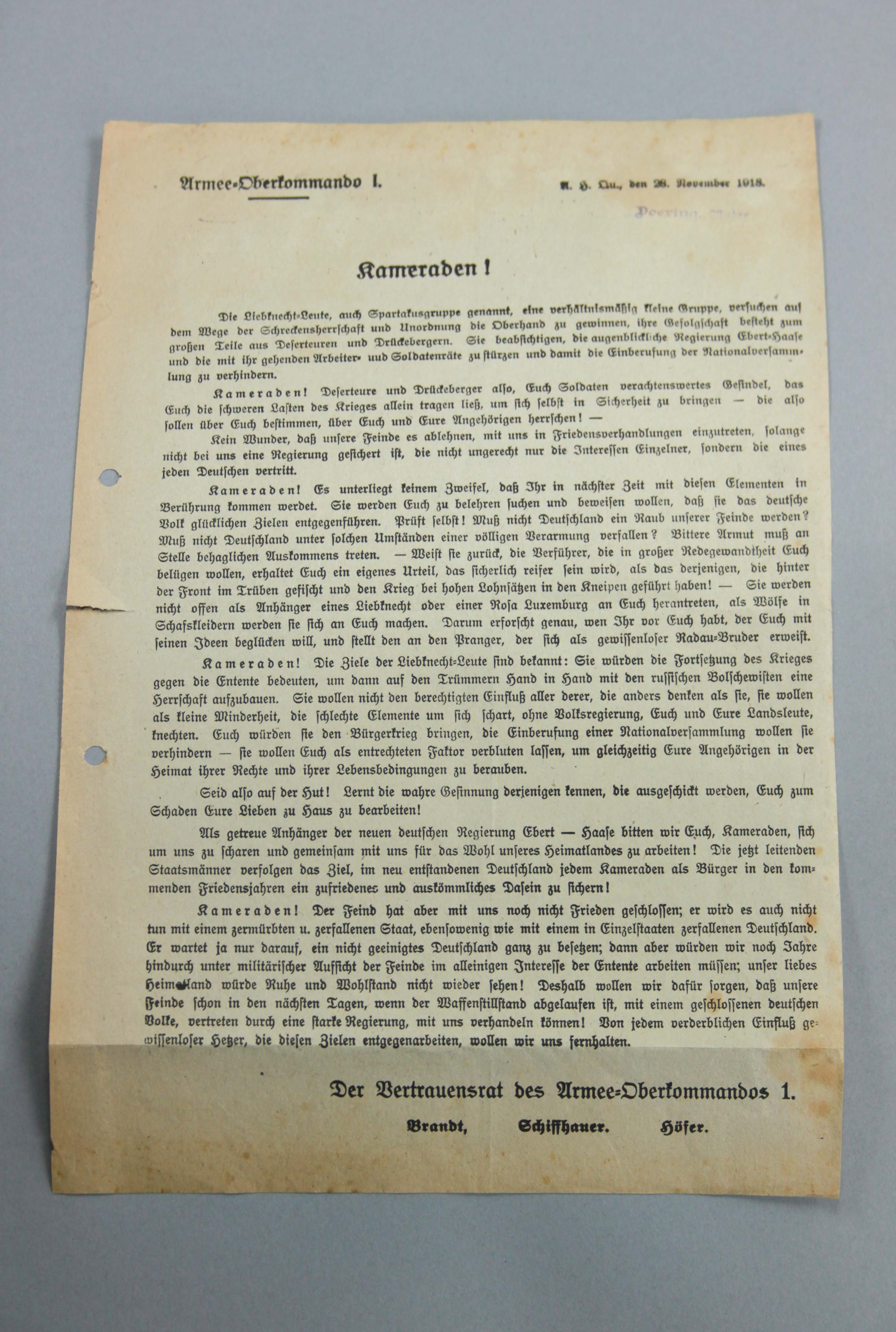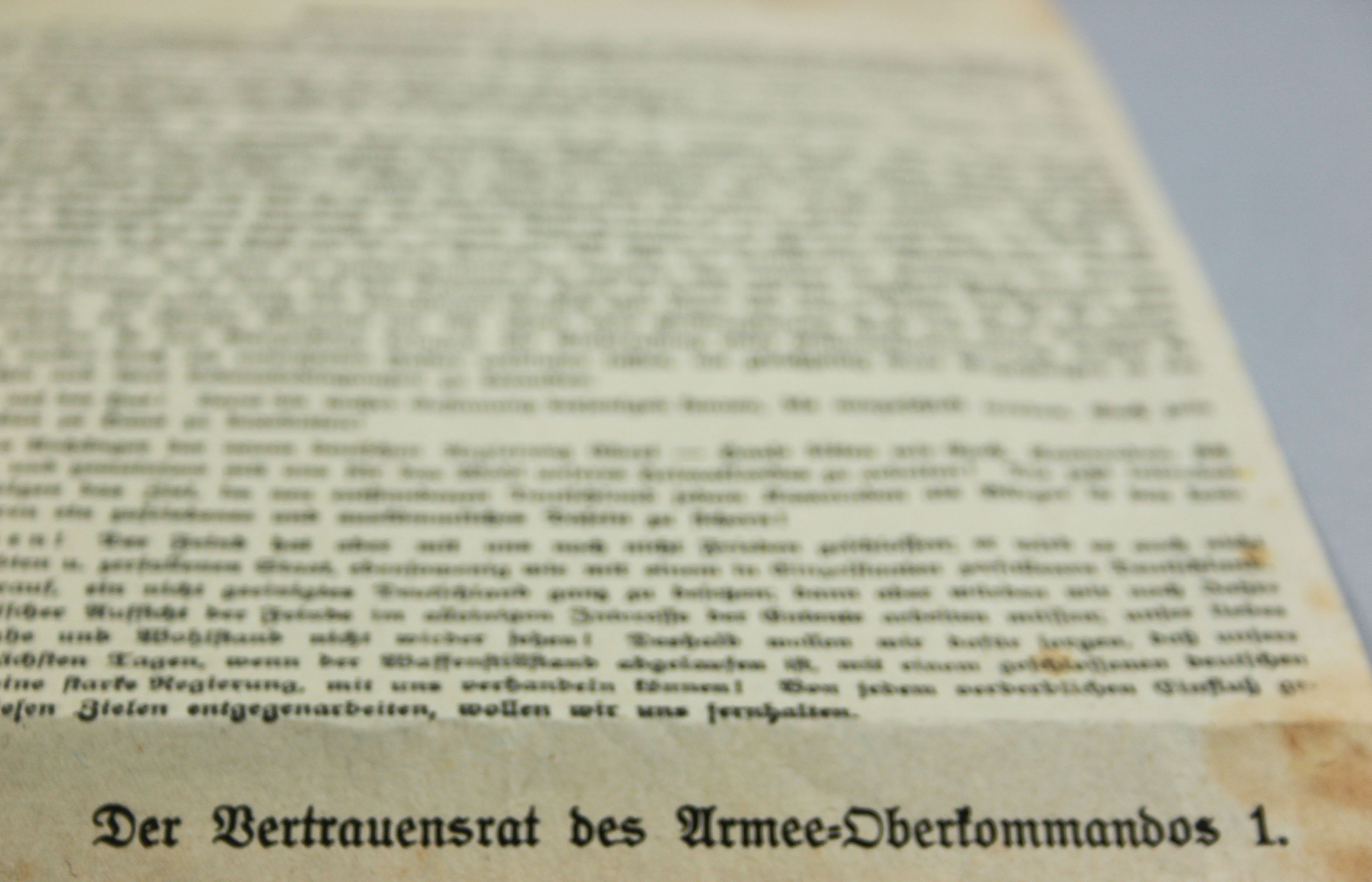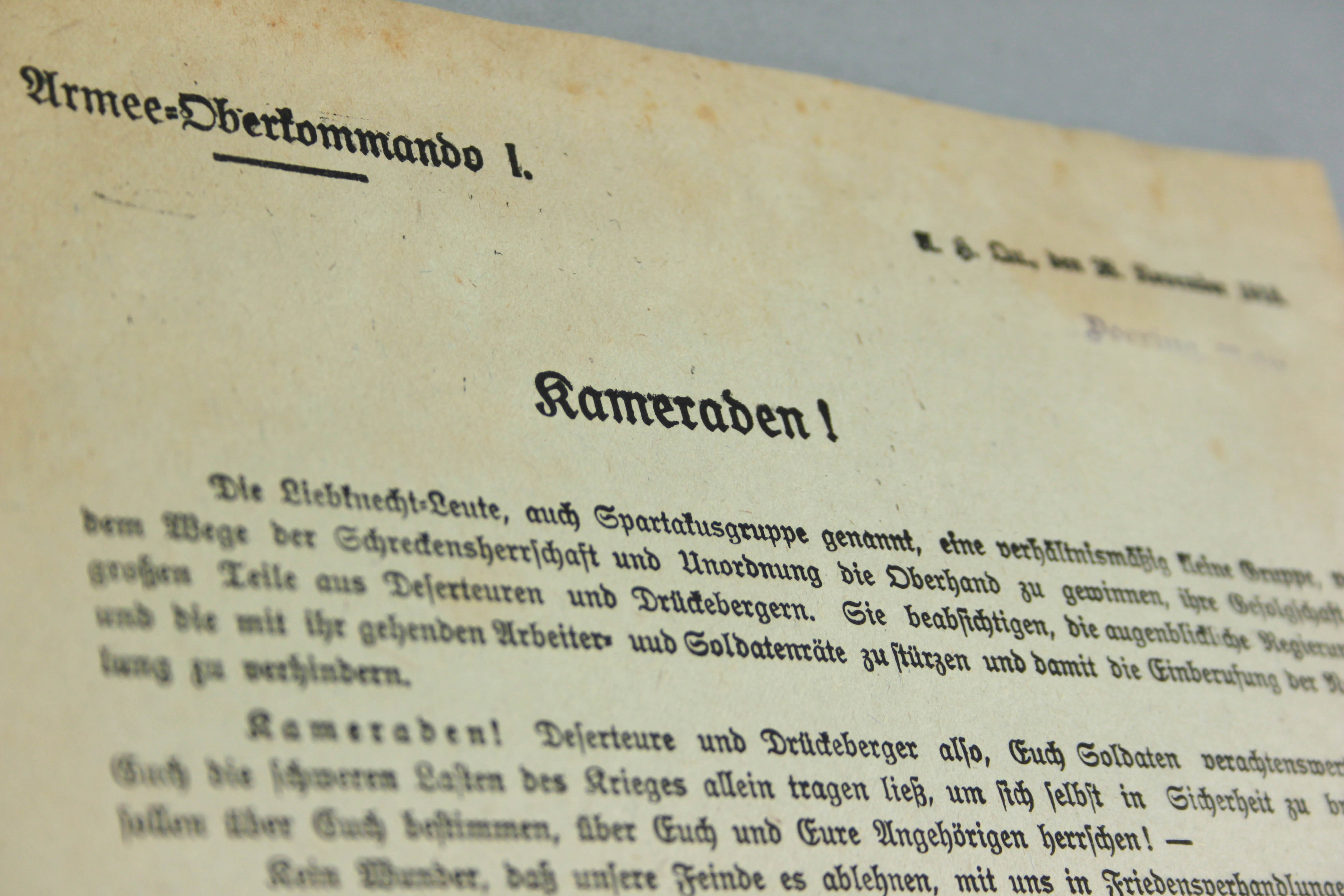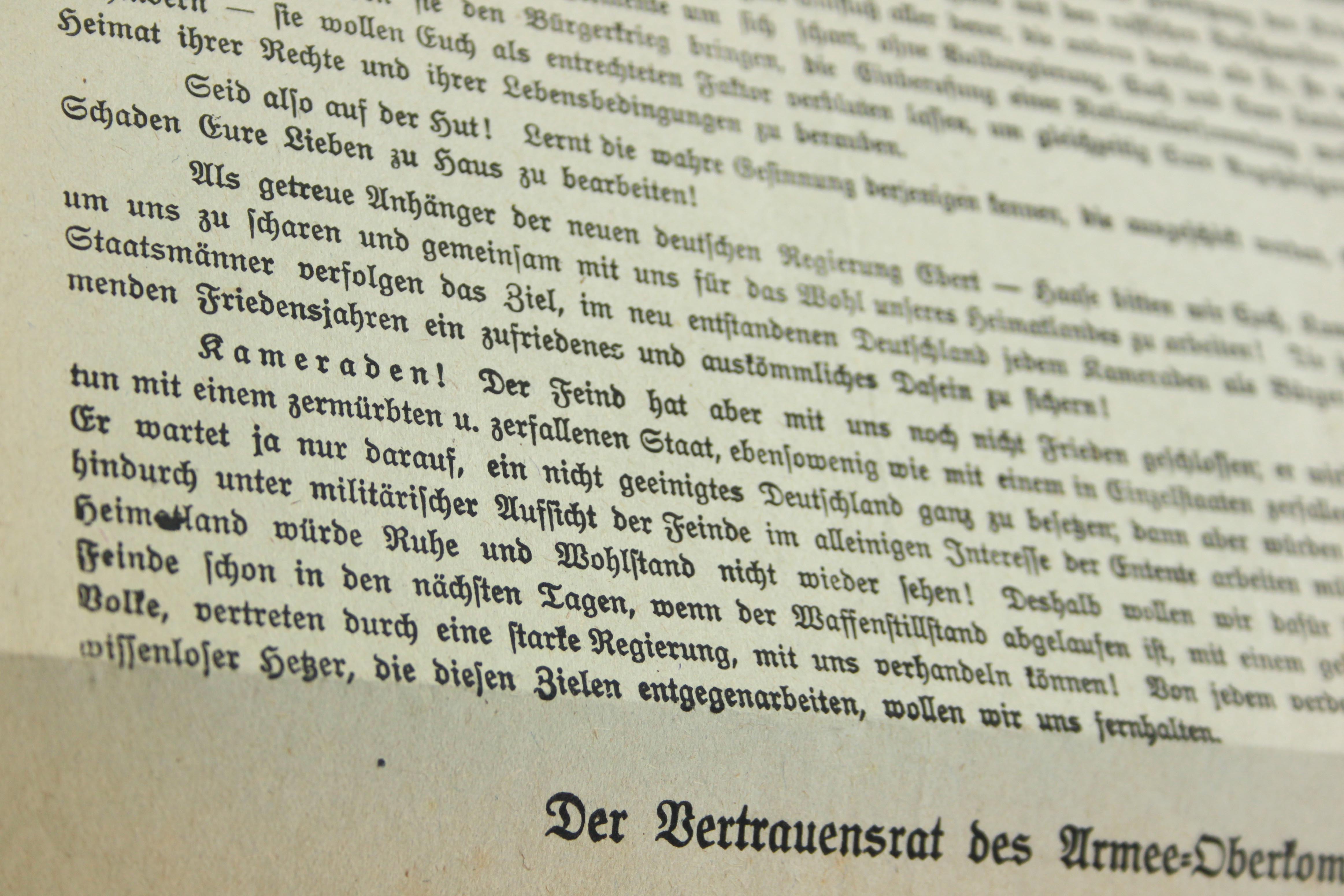 Aufruf des Armee-Oberkommandos an die Soldaten 1918
