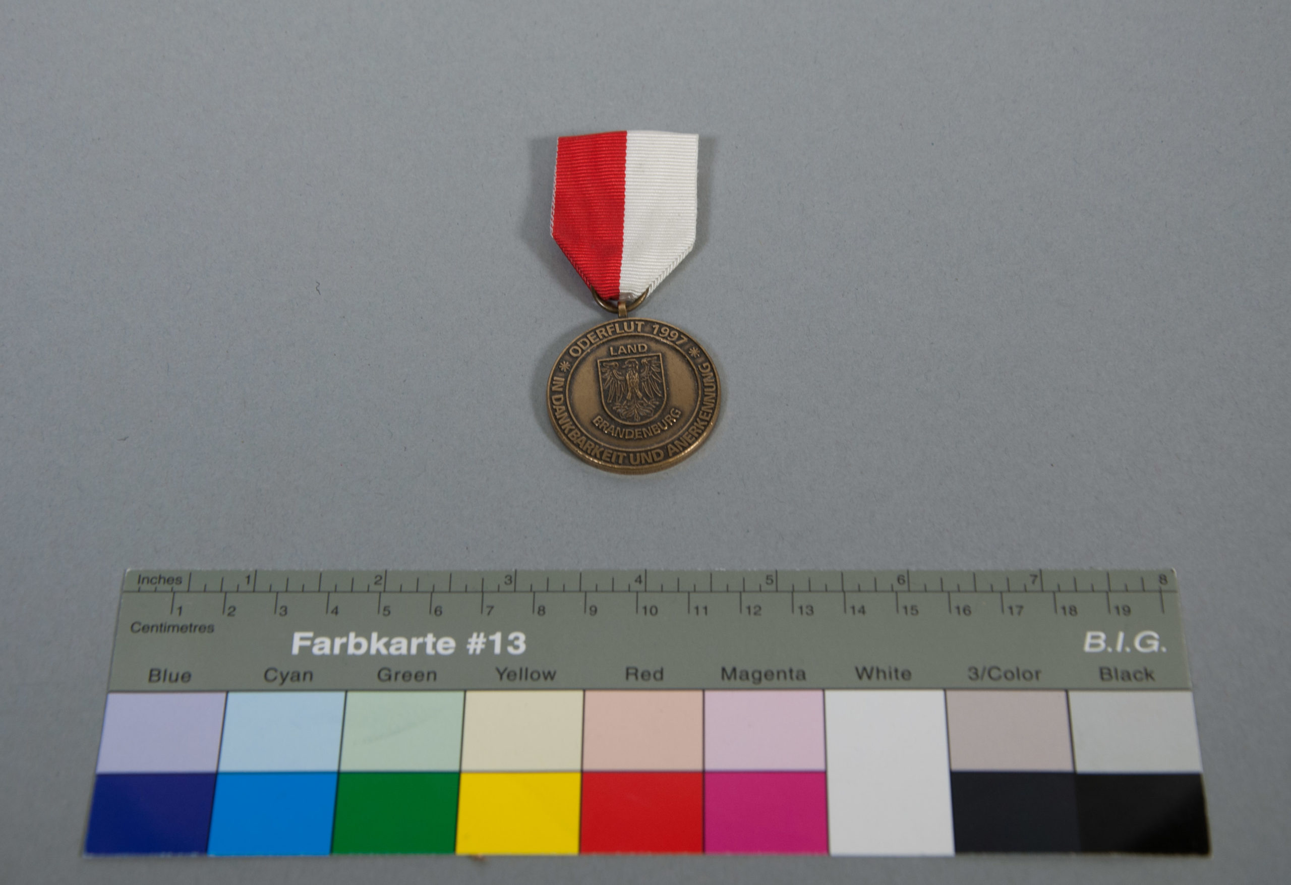 Der Einsatz der Bundeswehr in Ostdeutschland 1997 erhielt jedoch bundesweite Anerkennung. Noch im August 1997 stiftete der damalige Ministerpräsident Brandenburgs, Manfred Stolpe, eine Medaille zur Auszeichnung der Einsatzkräfte. Sie ist damit keine militärische Auszeichnung, sondern wurde an alle beteiligten Kräfte verliehen. Die Personen mussten zuvor für eine Verleihung vorgeschlagen werden. Die Medaille am Rot-Weißen Band zeigt den brandenburgischen Adler, der von den Worten „In Dankbarkeit und Anerkennung – Oderflut 1997“ gerahmt wird. Auf der Rückseite finden sich die Umrisse der von der Flut betroffenen Regionen in Polen und Deutschland mit den Flussläufen der Oder.